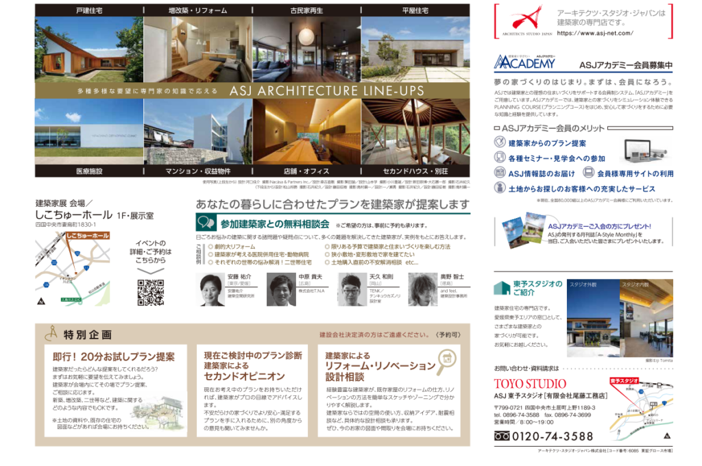 新築やリフォームのご相談、建築家と直接お話もでき、資金相談など無料でできます。